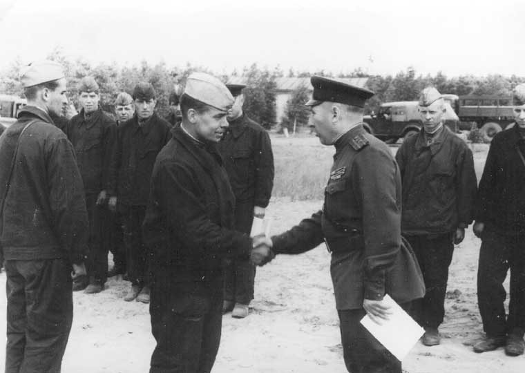 (18 из 21) Учебный центр Либерозе. Полковник Сергеев Н. С. поздравляет отличившихся. Из архива В. Н. Сергеева. ©