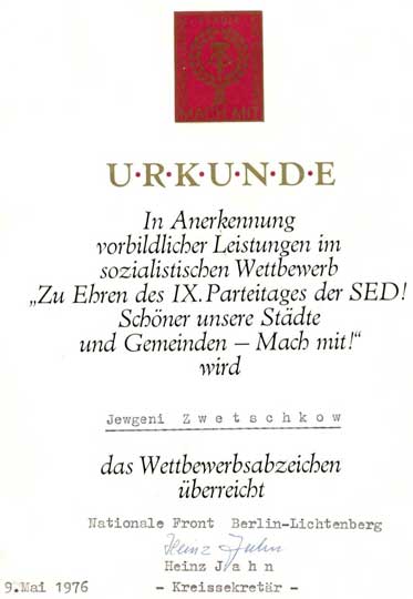 (2 из 28) Почетная грамота в память о советско-германской дружбе. Из архива Е. Н. Цветкова. ©