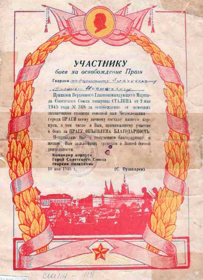 - 09.05.45 № 368 за освобождение столицы союзной Чехословакии — г. Прага.