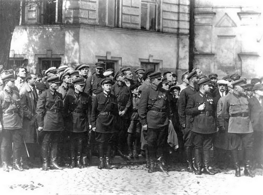 (2 из 12) В ожидании прохождения кавалерийской дивизии, участвовавшей во всесоюзных маневрах УкрВО. Справа налево: 1. нарком по военным и морским делам, Председатель РВС СССР к. Е. Ворошилов; 2. Пом. командующего УкрВО В. К. Блюхер (с четырьмя орденами); 3. Командир 14 стрелкового корпуса И. Н. Дубовой (c длинной бородой за спиной Блюхера); 4. Начальник снабжений РККА П. Е. Дыбенко (с бородой и тремя орденами); 5. Зам. начальника УкрВО, начальник снабжения маневров Л. А. Власенко; 6. Начальник Киевской артиллерийской школы П. А. Кронеберг (на заднем плане высокий, смотрит вправо); 7. Пом. командира 95 стрелковой дивизии по политчасти (не установлен): 8. Начальник 95 стрелковой дивизии Савицкий; 9. Комиссар Киевской артиллерийской школы И. С. Ганже. Киев, август-сентябрь 1928 г. Фото с сайта КВЗРИУ © |