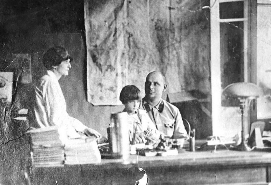 (9 из 12) П. А. Кронеберг с женой и дочкой в рабочем кабинете.