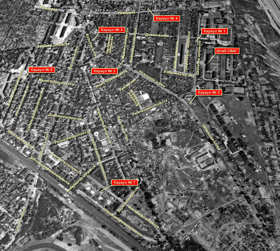 Этим приказом устанавливались следующие районы караулов гарнизона Штаба СВАГ: