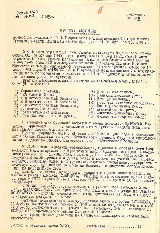 ЦАМО, ф. 17 гв. мехбр, оп. 1, д. 1, лл. 11-26.