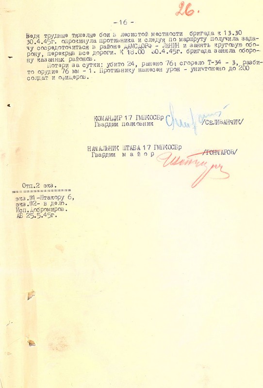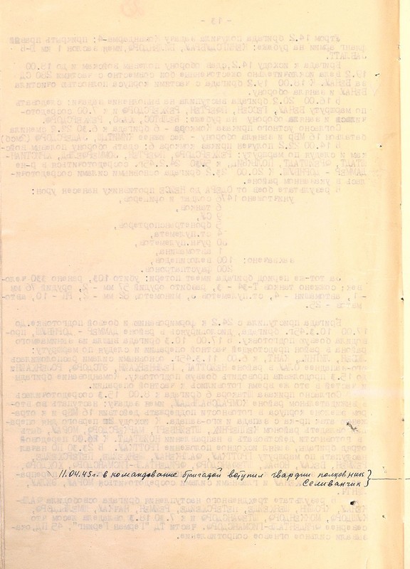11.04.45 г. в командование бригадой вступил гвардии полковник Селиванчик.17