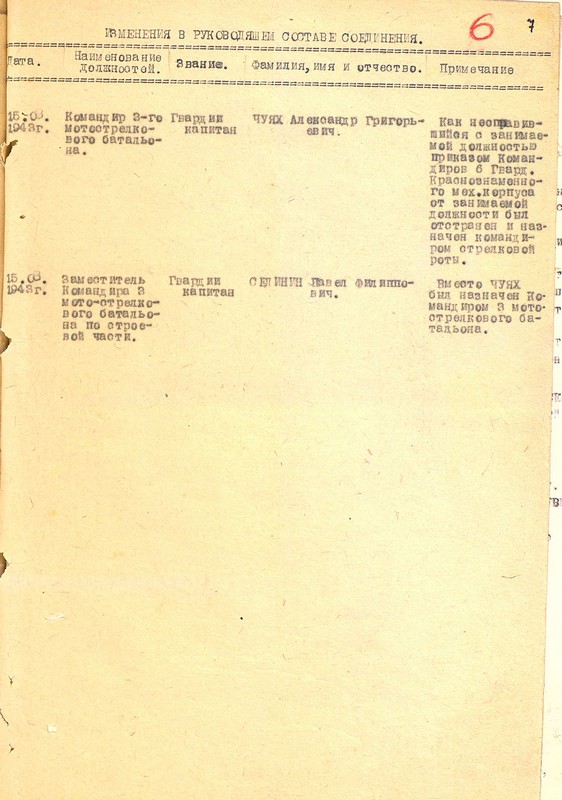 Как не справившийся с занимаемой должностью приказом Командиров10 6 Гвард. Краснознаменного мех. корпуса от занимаемой должности был отстранен и назначен командиром стрелковой роты. |