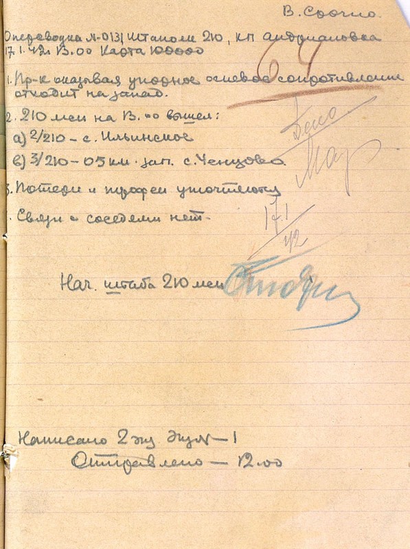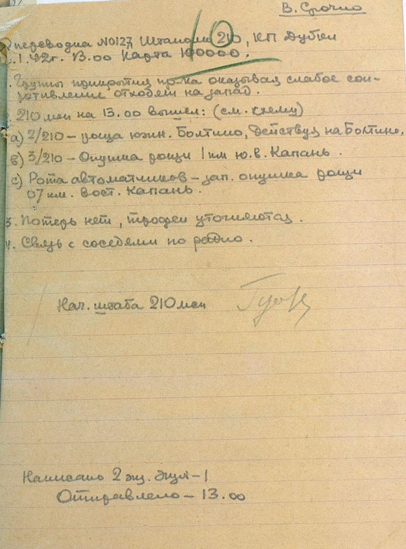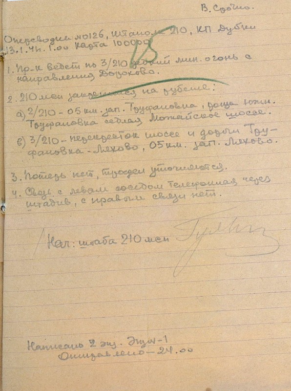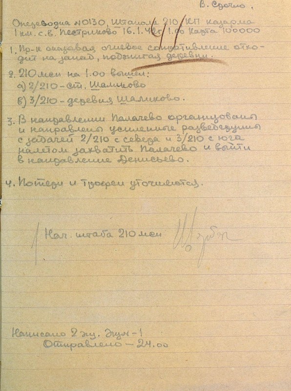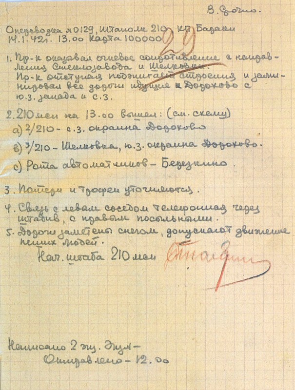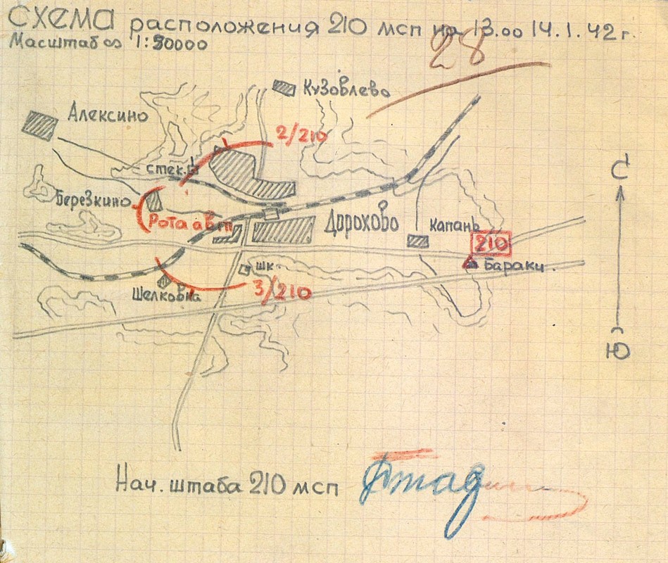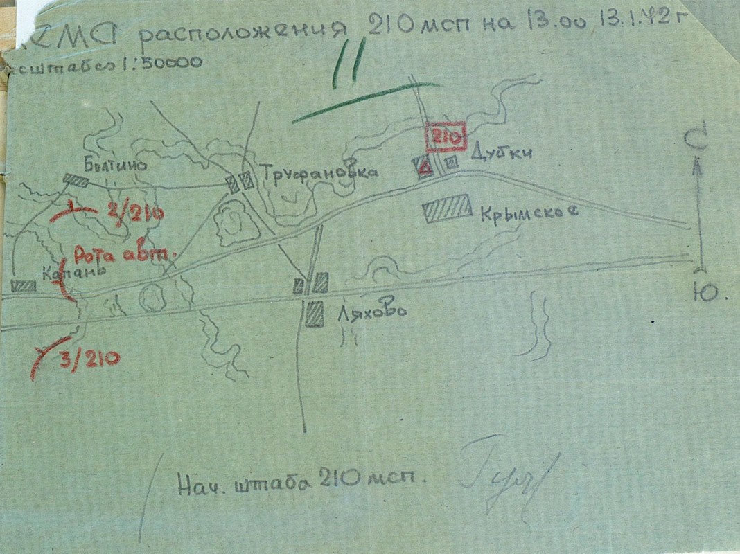 | Схема расположения 210 мсп | 13.01.1942 | Текст | Скан |