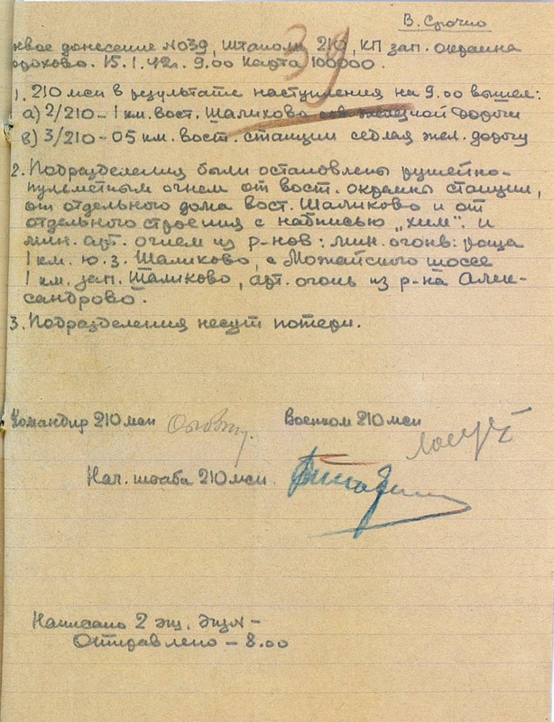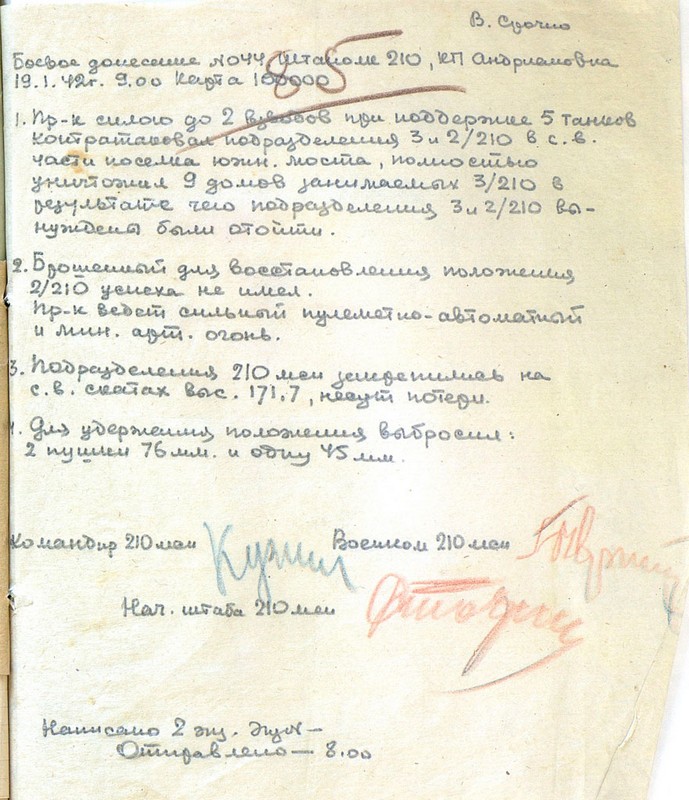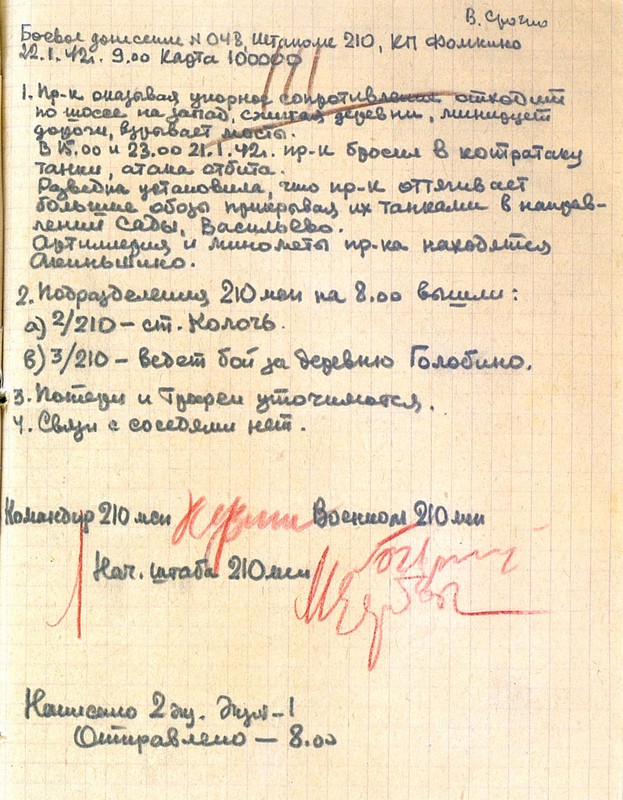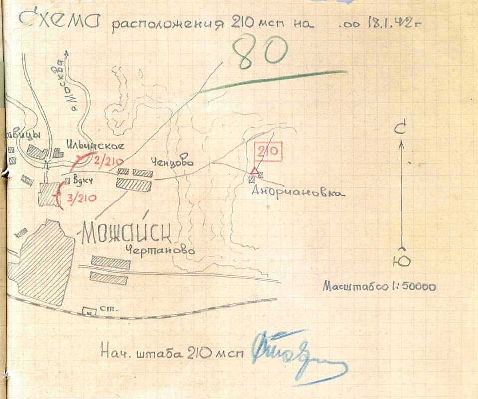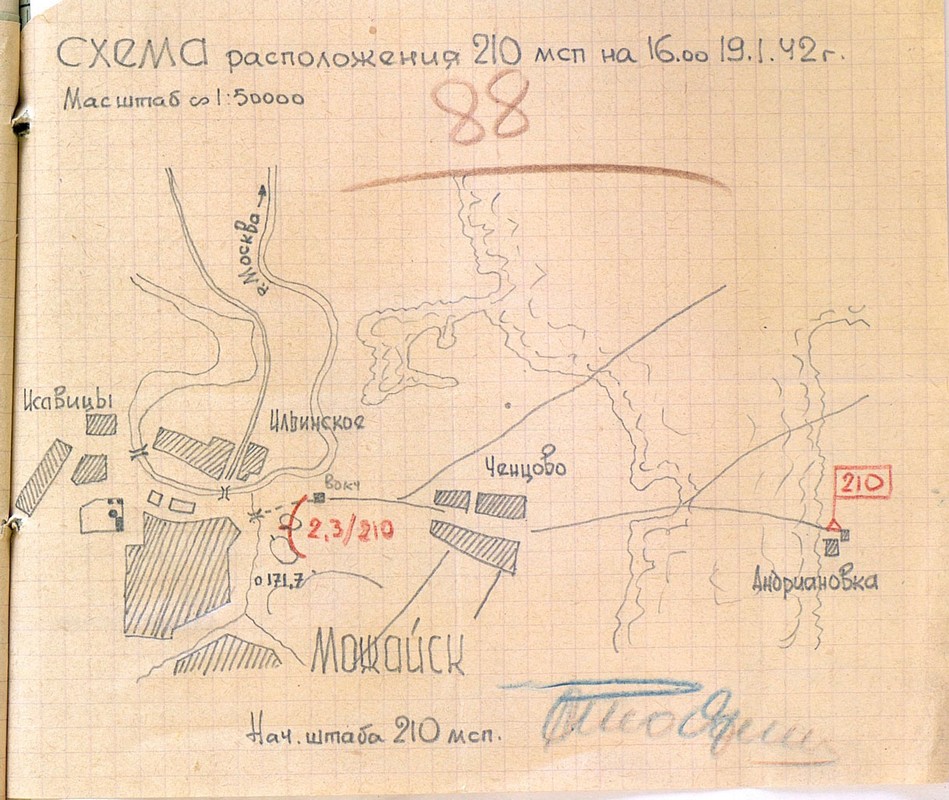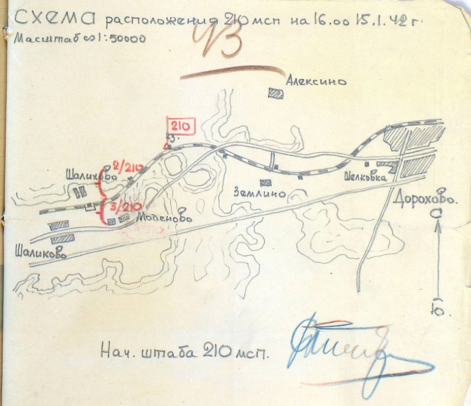 | Схема расположения 210 мсп | 18.01.1942 | Текст | Скан |