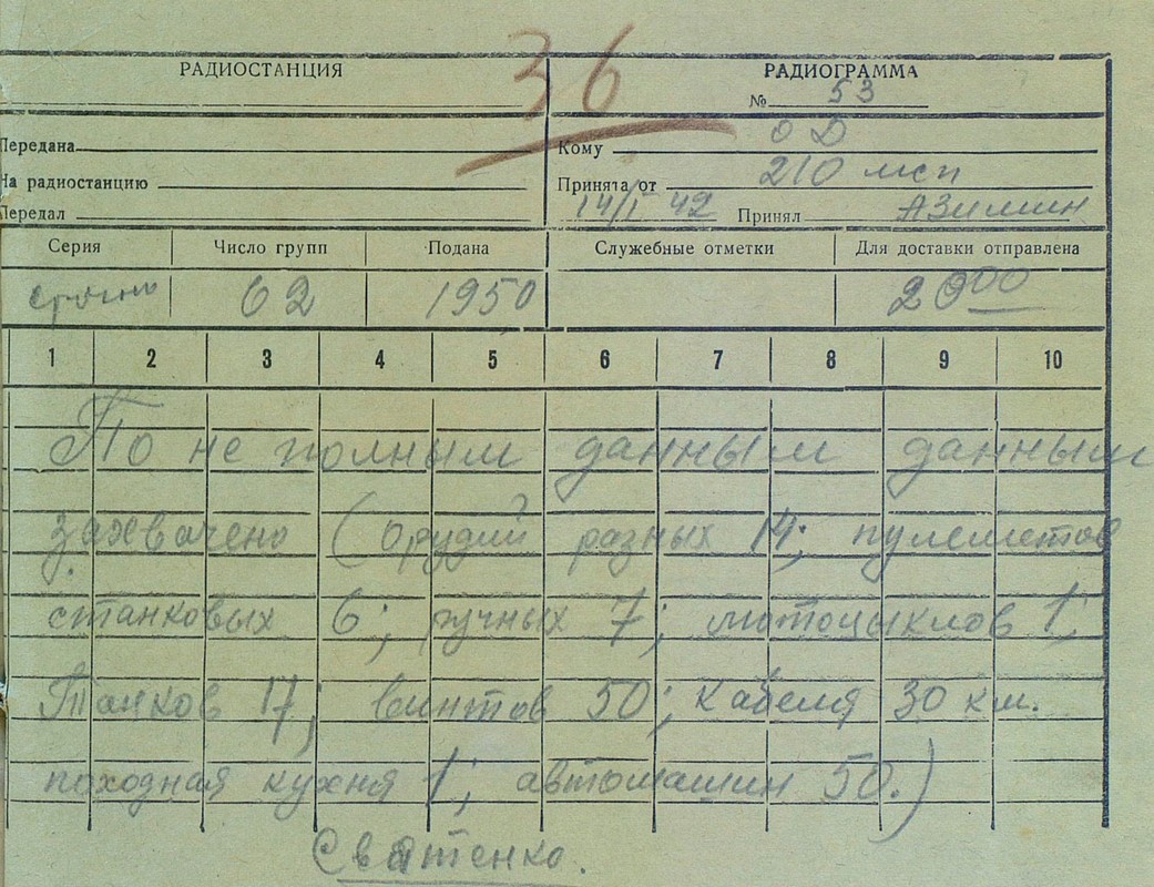 | Радиограмма ОД № 53 | 14.01.1942 | Текст | Скан |