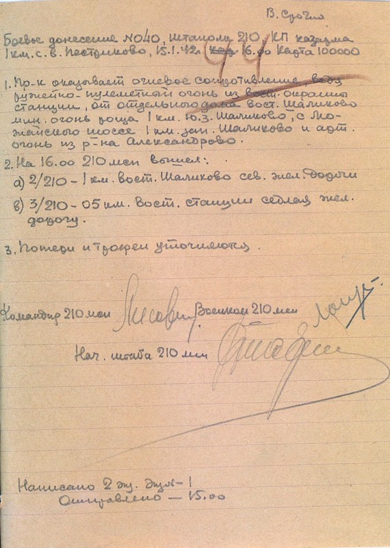 | Боевое донесение № 039 | 15.01.1942 | Текст | Скан |