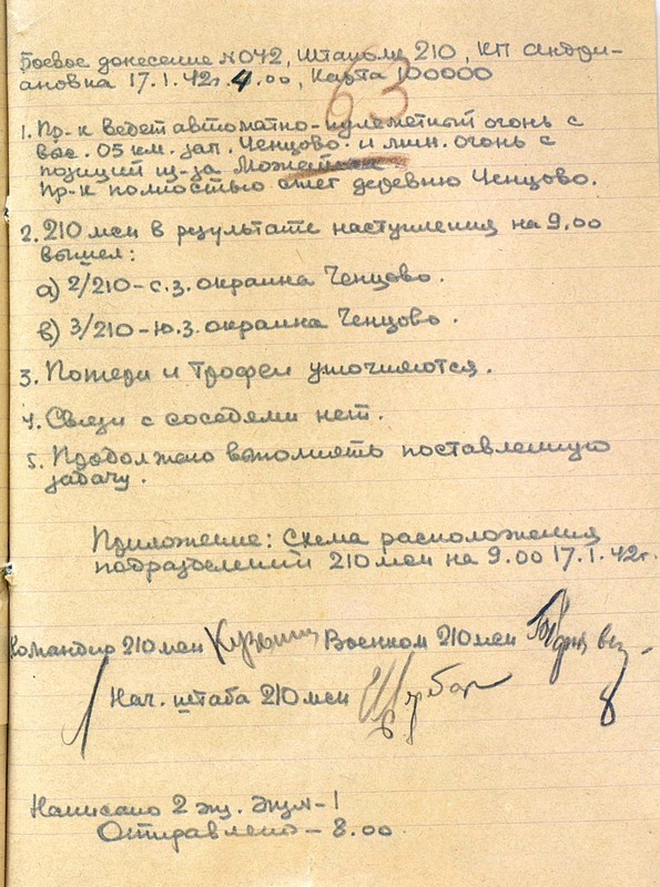 | Схема расположения 210 мсп | 17.01.1942 | Текст | Скан |