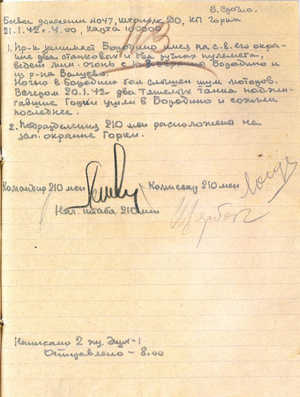 | Боевое донесение № 047 | 21.01.1942 | Текст | Скан |