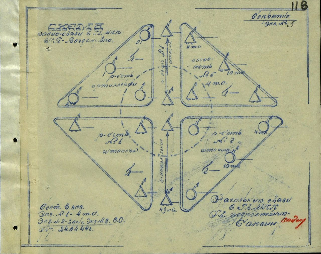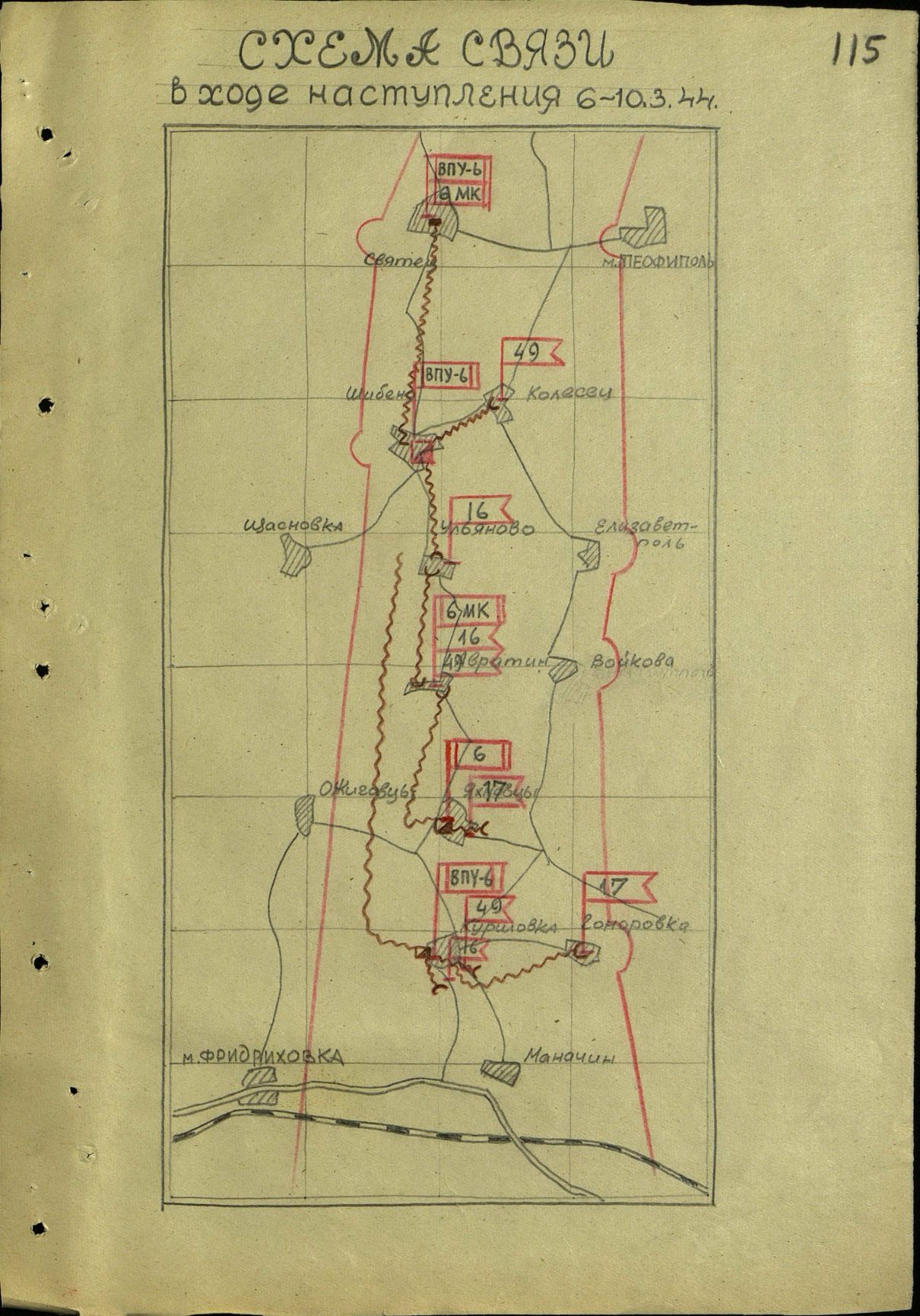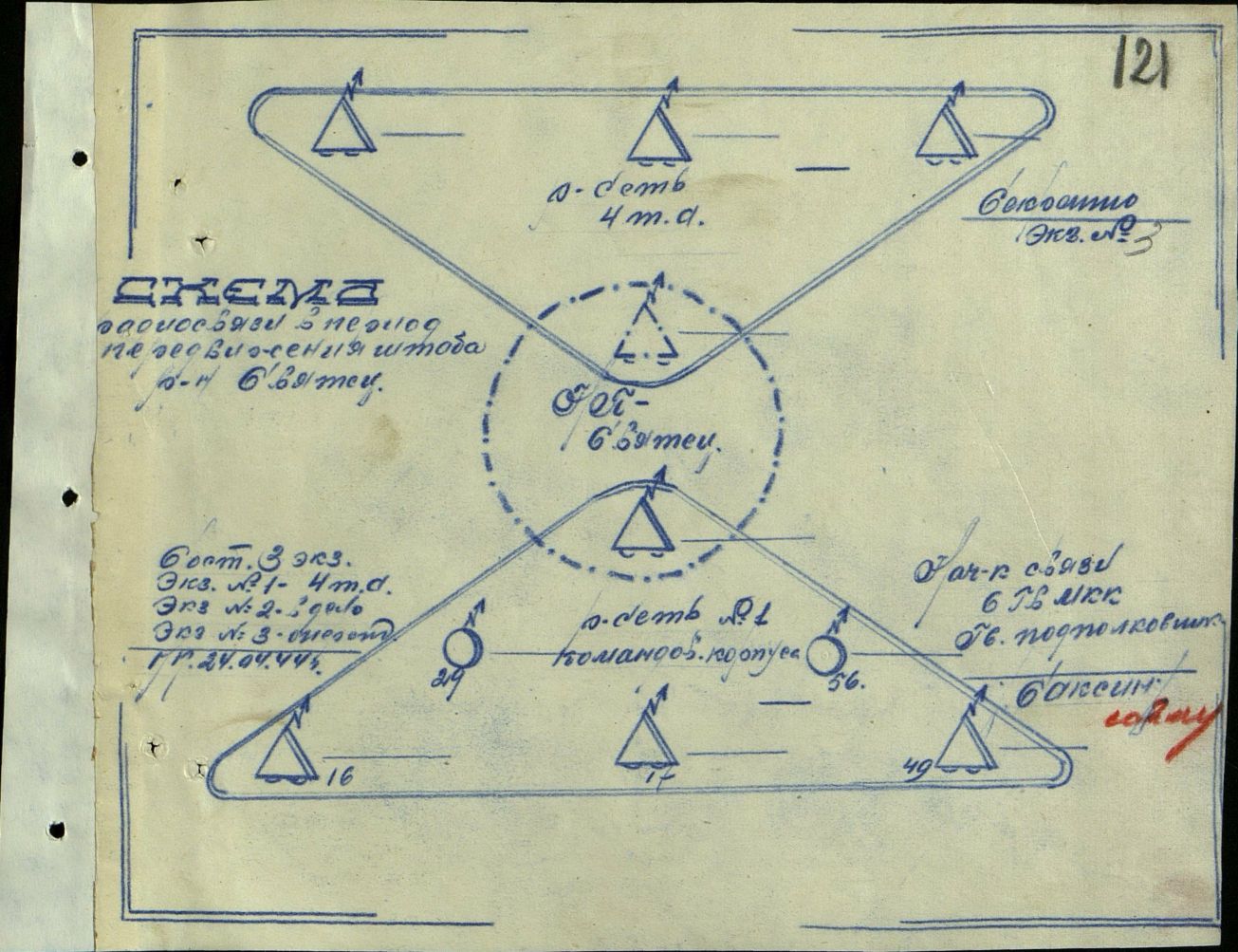 Схема связи в ходе наступления 6-10 марта 1944 г.