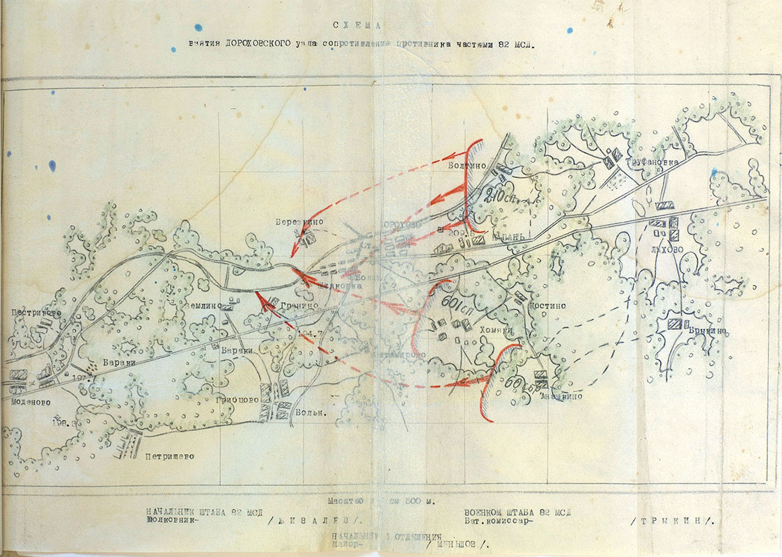 | Схема взятия Дороховского узла сопротивления частями 82 мсд | 9-12.01.1942 | Скан | |