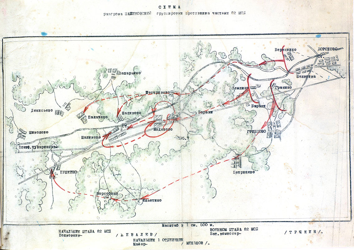 | Схема разгрома Шаликовской группировки противника частями 82 мсд | 14-15.01.1942 | Скан | |