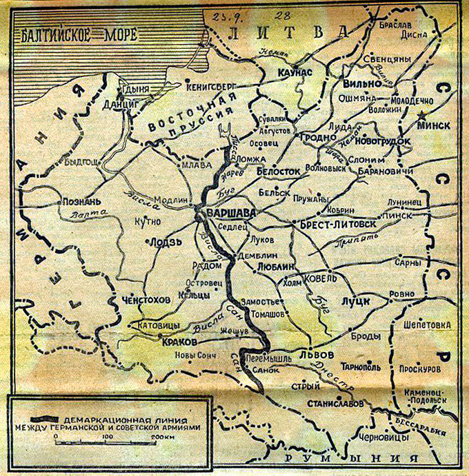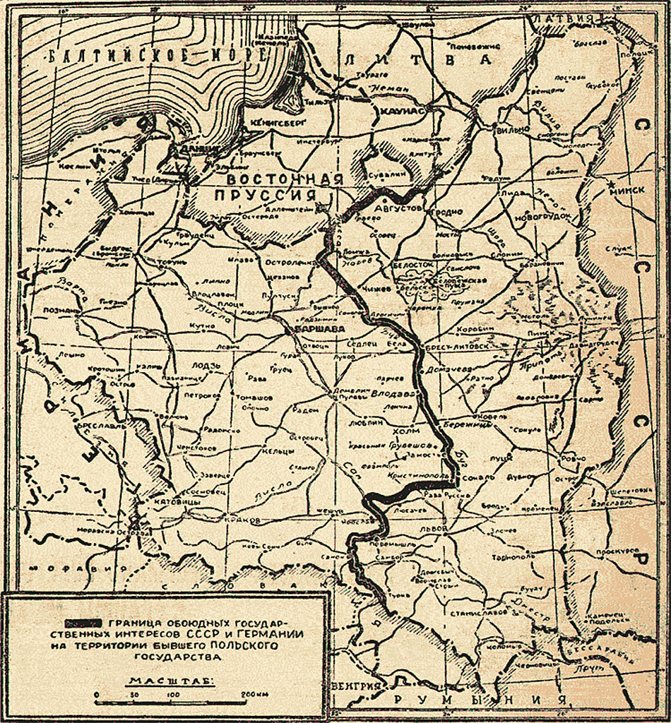 Зато 17 сентября 1939 г. в дело вступил СССР. Все закончилось очень быстро. Западная Украина и Западная Белоруссия стали советскими. 28 сентября 1939 г. в Москве был подписан договор «О дружбе и границе» между Германией и СССР, закрепивший ликвидацию Польши и подтвердивший ранее заключенный пакт Молотова-Риббентропа.