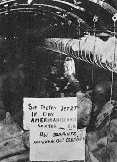 На следующий день отдельные журналисты решили посетить тоннель самостоятельно. Однако, когда корреспондент газеты «Berliner Kurier» Хюбнер и корреспондент информационного агентства «France Presse» Вицино спустились в тоннель и прошли некоторое расстояние, они наткнулись на спешно протянутую американцами колючую проволоку и импровизированные объявления на русском и немецком языках: «Собственность государства США, вход воспрещается» и «Вы входите в американский сектор».