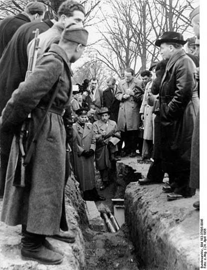 Весна 1956 г. в Берлине выдалась чрезвычайно ненастной. Непрерывные дожди постоянно вызывали множество замыканий в проложенных под землей кабелях телефонной сети. В ночь с 21 на 22 апреля 1956 г. специальная команда советских связистов начала рыть землю в «поисках мест коротких замыканий» (по официальной легенде). В 2 часа 50 минут рабочая группа нашла кабели, идущие от места подключения к люку, размещенному в полу коммуникационной камеры. Так был обнаружен тоннель, на долгие годы ставший предметом множества споров, не утихающих и поныне. Какова же предыстория этого неординарного события?