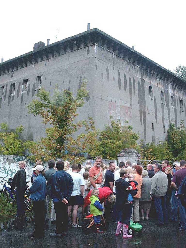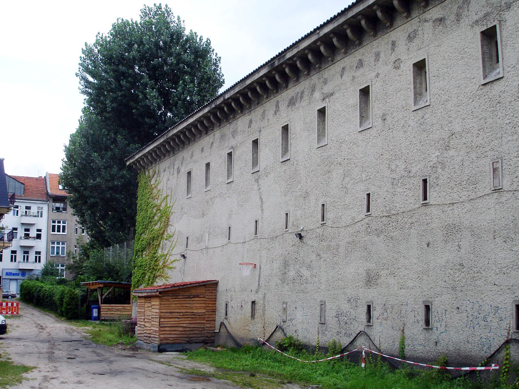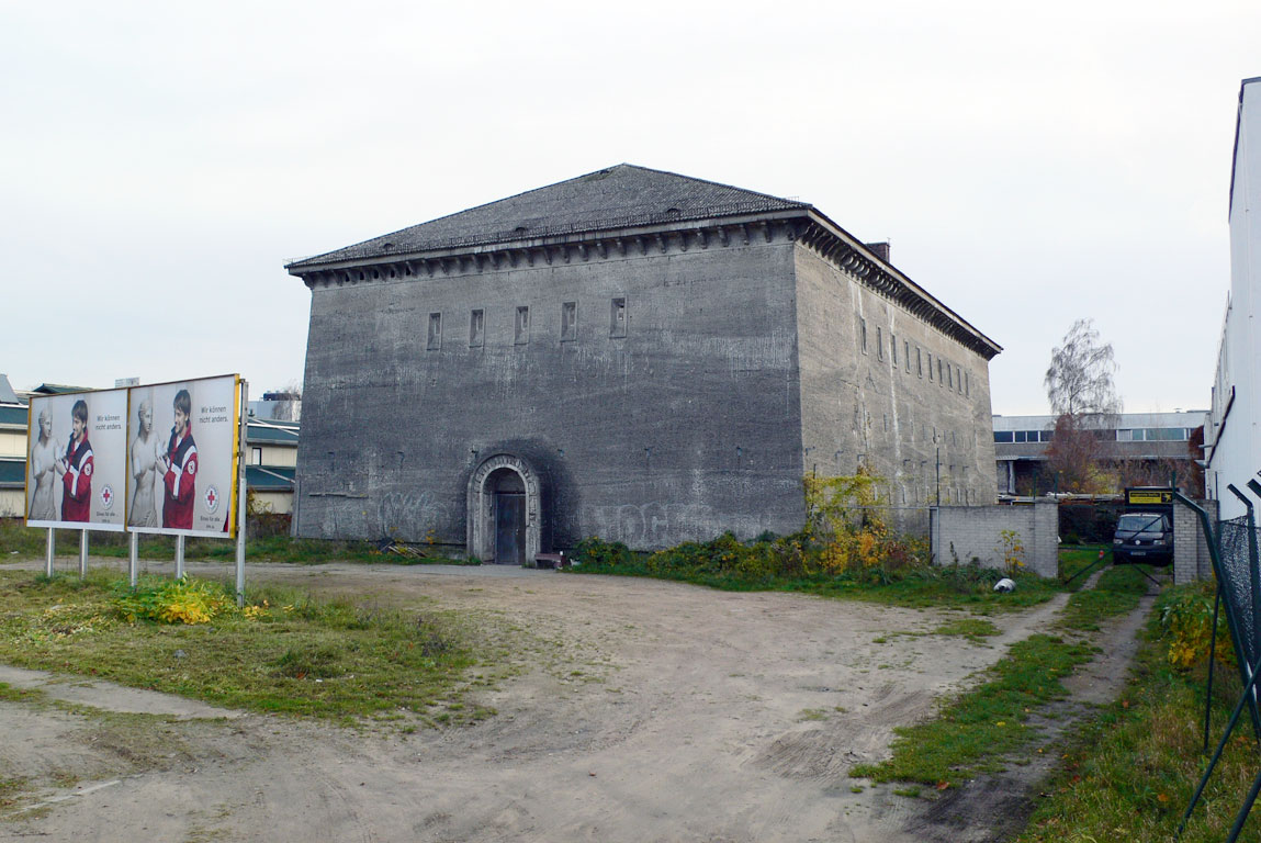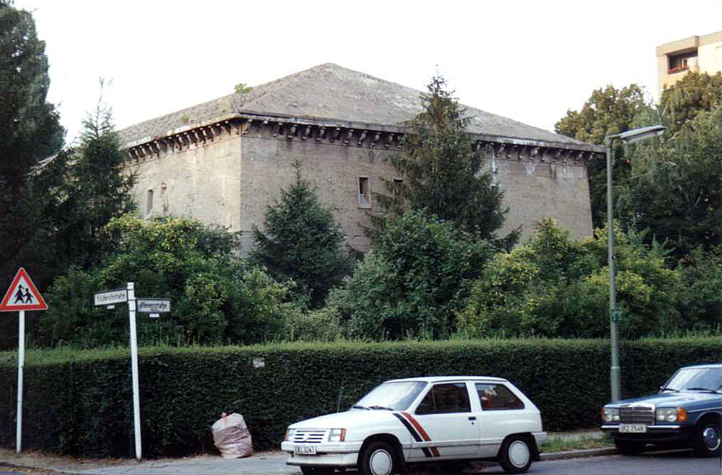 О бункере на пересечении Фёльдерихштрассе и Веверштрассе следует рассказать подробнее. Это был один из пяти самых первых высотных бункеров типа М500, построенных в столице рейха в 1941 г. А 19 июля 1946 г. ему, как и всем его бетонным собратьям в Берлине, был вынесен смертный приговор — на своем заседании союзники приняли решение сносить все подобные объекты. Приговор привели в исполнение в июле 1947 г. — бункер взорвали. Но произошло нечто невероятное: хотя лестницы и межэтажные перекрытия внутри здания обрушились, сама бетонная коробка устояла! Делать повторные подрывы не решились из опасений, что могут пострадать дома по соседству. Бункер решили использовать как складское помещение. И лишь спустя полвека, в 1997 г., непокорный бункер был снесен, а на его месте построен жилой дом.