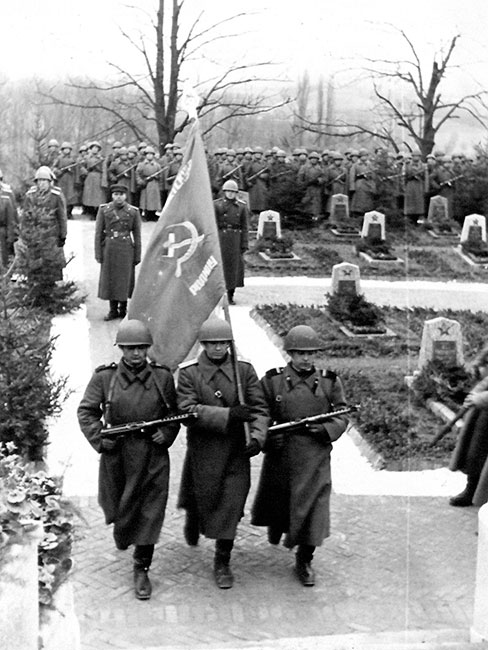 (17 из 38) Боевые знамена несут к подножию монумента.
