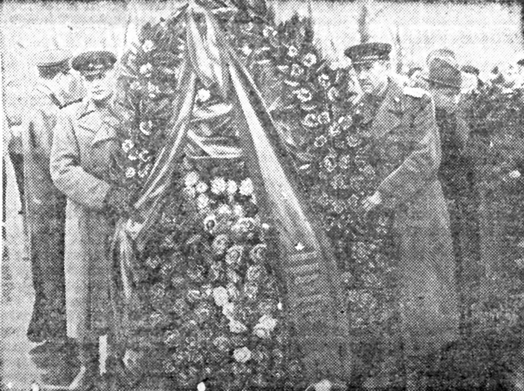 И сегодня, преклоняясь перед светлой памятью героически сражавшихся за счастье своего народа и беззаветно отдавших свою жизнь за дело свободы и справедливости, мы вместе со всем советским народом и всей Красной Армией, вместе с нашим советским правительством и великим Сталиным, возлагающими сегодня венки на могилы героев, мы говорим: вечная слава героям, павшим в боях за честь, свободу и независимость нашей Родины и демократических народов мира. Обнажим головы и склоним свои боевые знамена перед светлой памятью тех, кто своей кровью и жизнью проложил путь к победе и мирному творческому труду!