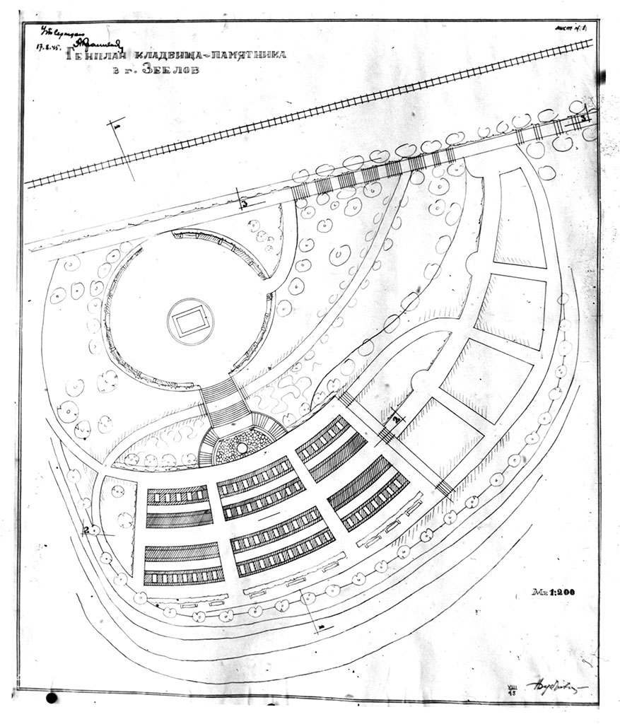 В самый разгар наступления на Берлин Военным Советом 1 Белорусского фронта было принято постановление № 058 от 20.04.45 г. «О создании кладбищ и сооружении фундаментальных памятников на территории Польши воинам Красной Армии, погибшим в боях за свободу и независимость нашей Родины».1 Постановление предусматривало создание на территории восточнее Одера 32 хорошо оборудованных братских кладбищ. Помимо этого в постановлении говорилось о создании в девяти польских городах крупных памятников по проектам, представленным Политуправлением фронта и утвержденным Военным Советом. Создание кладбищ и сооружение памятников возлагалось на Инженерное Управление фронта с привлечением сил 27 Управления оборонительного строительства. Примечательно, что в этом постановлении предпринималась попытка упорядочить множественные беспорядочно разбросанные в полосе фронта братские захоронения. Согласно постановлению отдельные захоронения и небольшие кладбища в радиусе 25 км от указанных пунктов и останки захороненных в них воинов следовало перенести на основные кладбища.