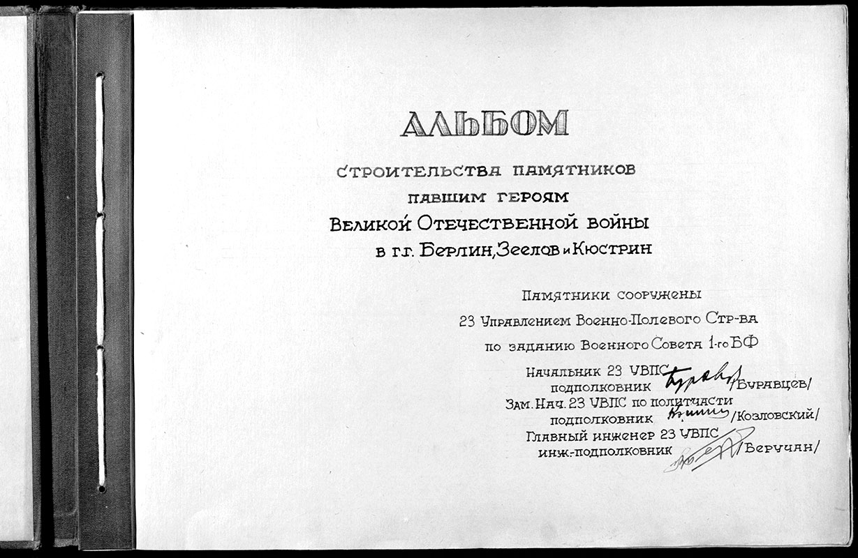 - Альбом строительства памятников павшим героям Великой Отечественной войны в гг. Берлин, Зеелов и Кюстрин. – Из личного архива В. А. Беручан.