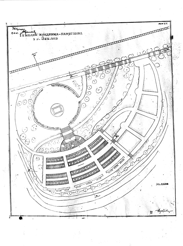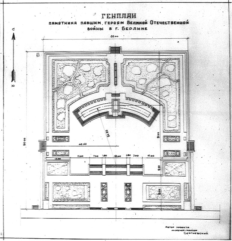 В самом деле, еще раз внимательно вглядитесь в приведенный в начале статьи снимок аэрофотосъемки 1945 г. Памятник на месте — вот он, во всем своем величии. Но почему на снимке нигде не видно кладбища? А ведь оно, вобравшее в себя две с половиной тысячи солдатских душ, должно занимать немалую площадь. Но на снимке-то его нет! Неужели главный архитектор проекта инженер-майор Н. В. Сергиевский осмелился не выполнить приказ самого маршала Жукова? Нет, Сергиевский как раз все сделал на совесть и приказом Г. К. Жукова был награжден мотоциклом «за хорошую организацию работ, четкое руководство и постройку памятника в короткие сроки с хорошим качеством работы». Тогда где же оно, это непонятное кладбище, о котором все знают, но которого никто и никогда не видел? Нигде не опубликовано ни одной, даже самой плохонькой, его фотографии. В немецких архивах о нем также не сохранилось никаких упоминаний, хотя обязанности по уходу за местами погребений советских солдат и офицеров были возложены на берлинские власти. Нет никакого намека на кладбище в Тиргартене и в «Альбоме строительства памятников павшим героям в гг. Берлин, Зеелов и Кюстрин», завизированном подписями командования 23-го Управления военно-полевого строительства. Среди прочих материалов в данном альбоме имеются генеральные планы указанных мемориалов. Обращает на себя внимание, что на генпланах мемориал в Тиргартене обозначен, как памятник, а мемориальные комплексы в Зеелове и Кюстрине — как памятники-кладбища.