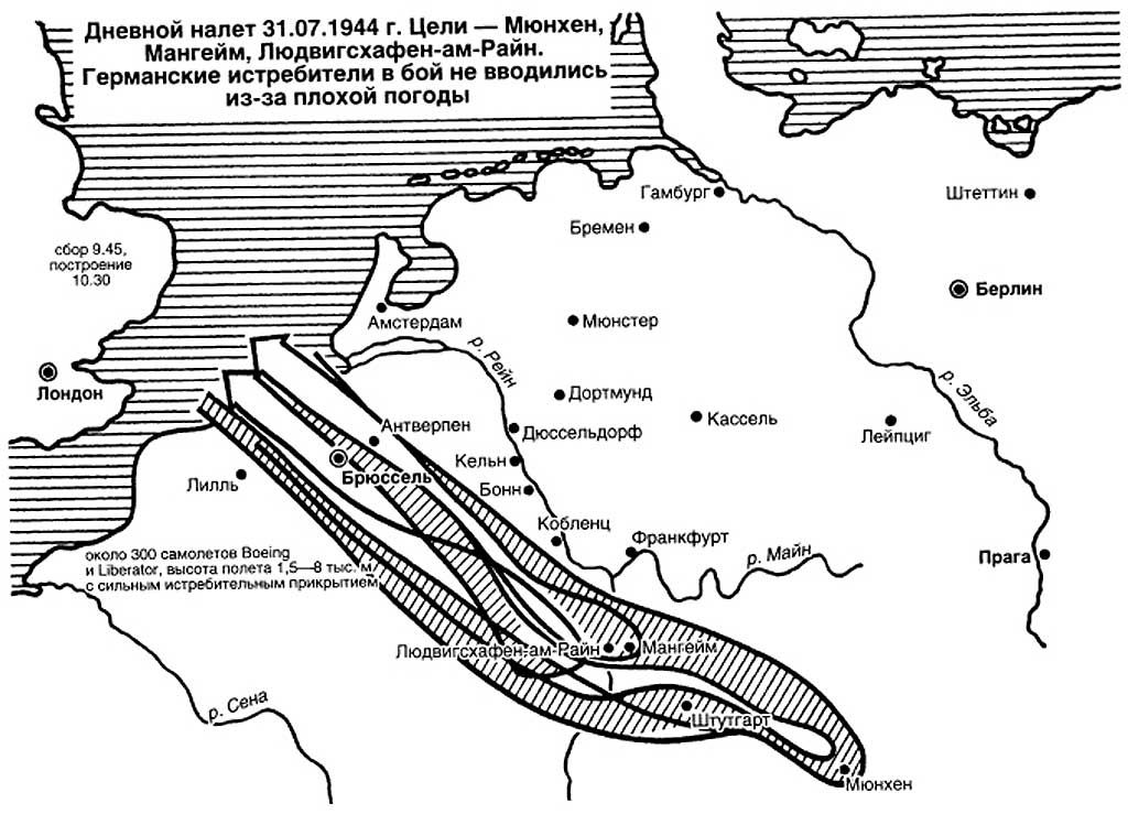 Во время налета на Ганновер в июле из 92 бомбардировщиков было потеряно 24 машины, при бомбардировке 28 июля Берлина силами 112 американских самолетов 22 из них были сбиты.