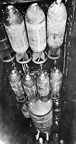 C начала 1944 г. наличие истребительного сопровождения на всем пути позволило экипажам бомбардировщиков целиком сосредоточиться на бомбометании с помощью нескольких самолетов, оснащенных специальной аппаратурой. Один такой лидер вел бомбардировочную эскадрилью из 12 машин, а три эскадрильи образовывали группу в форме наконечника стрелы. И, наконец, последнее усовершенствование, введенное в феврале 1945 г., когда немцы стали прикрывать города концентрированными массами зенитных батарей, выразилось в формировании группы из четырех эскадрилий по девять бомбардировщиков, следовавших на разных высотах с целью усложнить вражеским зенитчикам правильную установку прицелов и снарядных трубок.