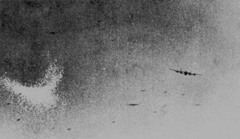 А произошло следующее: англичане впервые воспользовались простым, но эффективным средством противодействия РЛС. Это средство заключалось в выбросе из самолета тонких полосок фольги определенной длины. Чтобы эффективно подавить РЛС противника, длина полоски фольги должна была соответствовать половине рабочей длины волны РЛС (то есть 27 см). Выбрасываемые пачками, которые затем раскрывались, полоски фольги создавали ответные сигналы целей на экранах РЛС и скрывали ответные сигналы реальных самолетов или имитировали присутствие их огромного множества. Операторы РЛС были совершенно сбиты с толку бесчисленными белыми вспышками, которые появились на экранах их РЛС и не имели возможности определить количество и местонахождение приближающихся самолетов противника. Радары словно всбесились, показывая одновременное присутствие в воздухе просто невероятного числа вражеских бомбардировщиков.