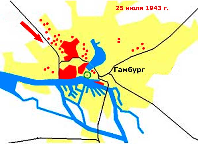 В ответном послании Сталин поприветствовал британские Королевские ВВС и одобрил намерения Черчилля усилить бомбардировки Германии. Но даже Сталин с его прозорливостью вряд ли догадывался, что скрывалось за обещаниями Черчилля ужесточить налеты. То, что произошло во время последующих уничтожительных воздушных ударов по Гамбургу, было за пределами всей предыдущей практики войны. C 25 июля по 3 августа Гамбург пережил четыре ночных и три дневных налета. Приблизительно 3 тысячи бомбардировщиков сбросили около 9 тыс. т бомб, в том числе: 4400 т фугасных бомб и мин, 2700 т зажигательных бомб на основе твердого зажигательного материала (включая 1,5 млн боеприпасов пластинчатого типа, пропитанных белым фосфором), и 1900 т зажигательной жидкости.