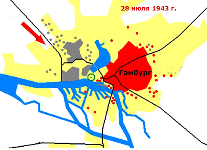 Ночь с 26 на 27 июля выдалась относительно тихой, если не считать беспокоящих налетов неуловимых «москито», державших в напряжении ПВО города. Несмотря на мощные дневные атаки американских бомбардировщиков, пожарные и спасательные службы Гамбурга пытались бороться с пожарами и откапывать людей из-под развалин. Но в ночь на 28 июля британская авиация нанесла по городу свой второй страшный удар.