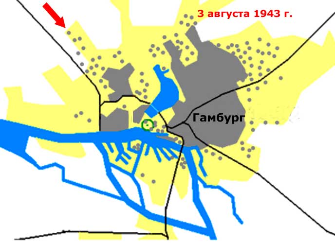 Во время третьего и четвертого налетов англичане нанесли мощный удар по чудом уцелевшим в предыдущие дни районам Гамбурга. Одновременно бомбовая лавина обрушилась и на два соседних небольших городка Эльмсхорн и Ведель, куда стекался поток беженцев из Гамбурга.