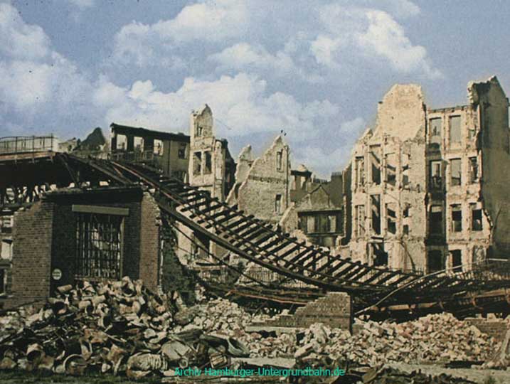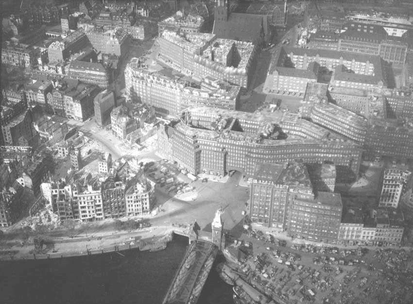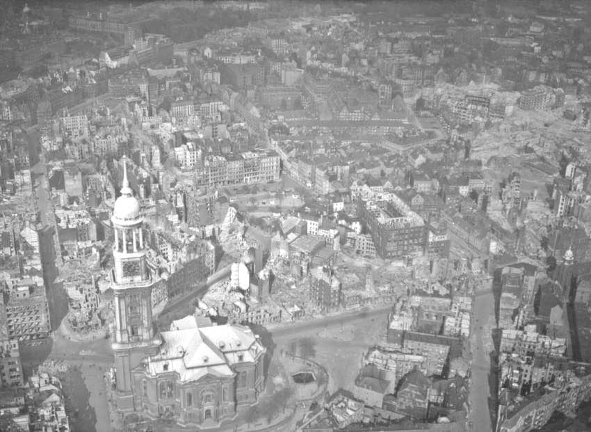 Общее количество образовавшегося в результате бомбежек строительного мусора оценивается в 40 млн т. Как и в других немецких городах, подвергшихся ударам авиации западных союзников, особенно сильно пострадали плотно застроенные центральные районы Гамбурга. Окраины города пострадали меньше и не являли собой картину таких же сплошных разрушений, исказивших вид города до неузнаваемости. Здесь все еще можно было различить расположение главных улиц и площадей. Меньше, чем соседние жилые районы, пострадал и район Бинненальстер.