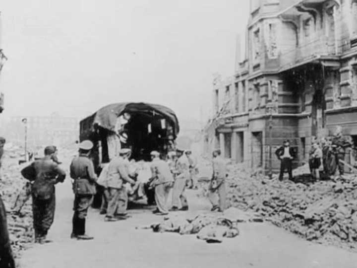 На принудительные работы было направлено множество рабочих бригад, кроме того, из ближайшего концлагеря были пригнаны заключенные, которые извлекали из развалин трупы, грузили их и отвозили на кладбище Ольсдорф для захоронения в братских могилах.