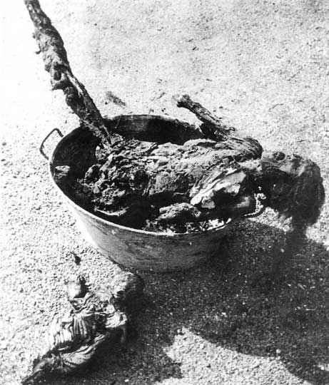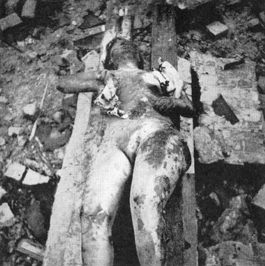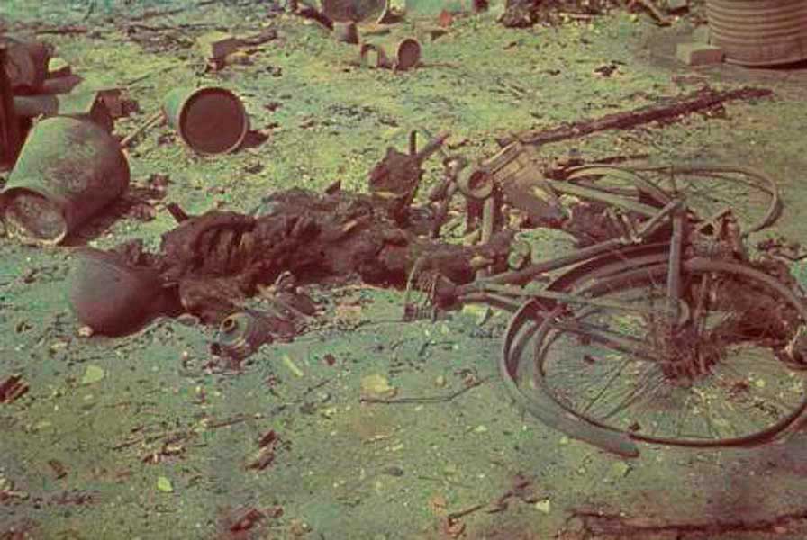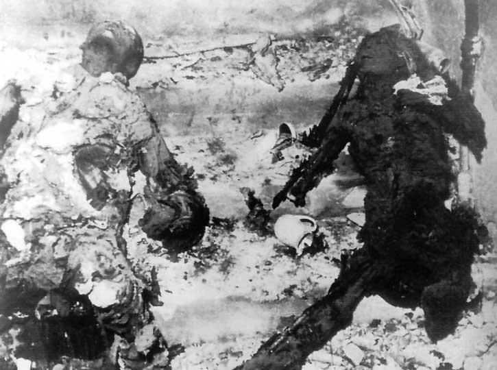 Когда спасательные команды, наконец, расчистили себе путь к наглухо замурованным бункерам и убежищам, прошло несколько недель, и от их обитателей ничего не осталось. В одном бункере обнаружили лишь мягкий волнистый слой пепла, по которому врачи смогли определить примерное число жертв — их было 250-300. В этих бункерах была необычно высокая температура, что нашло подтверждение в сгустках расплавившегося металла, в который превратились кастрюли, сковородки и другая кухонная утварь, принесенная в убежища. Те же, кому удалось уберечься от испепеляющего жара, задохнулись от нехватки кислорода, либо отравились угарным газом. Их так и находили потом, иногда через многие месяцы.