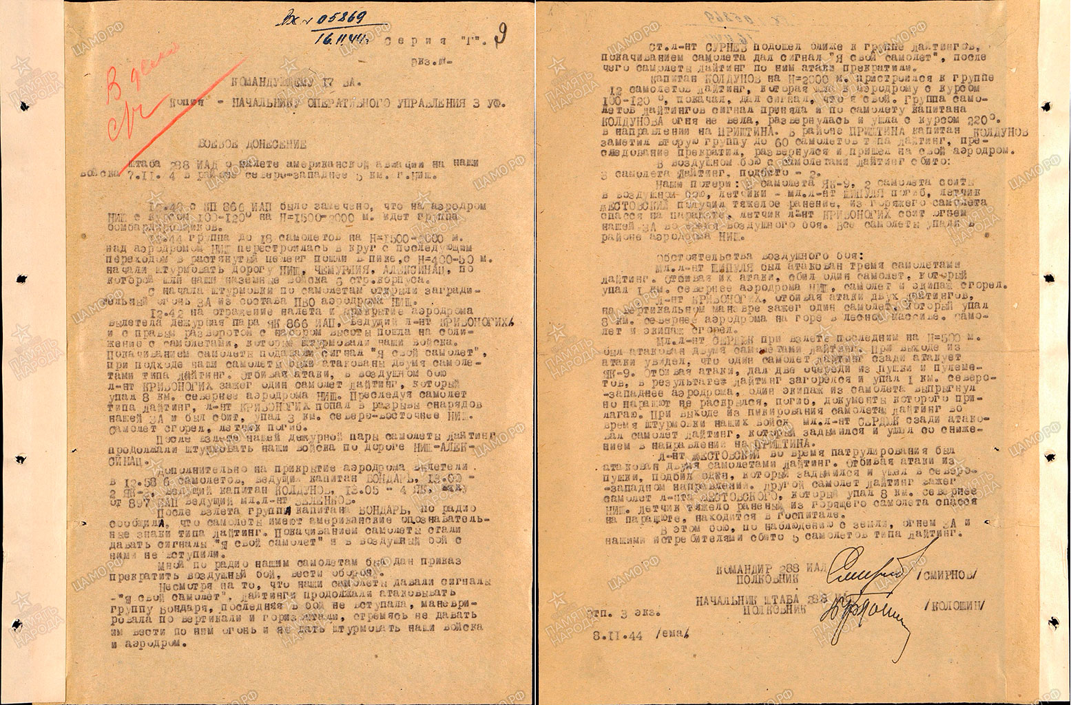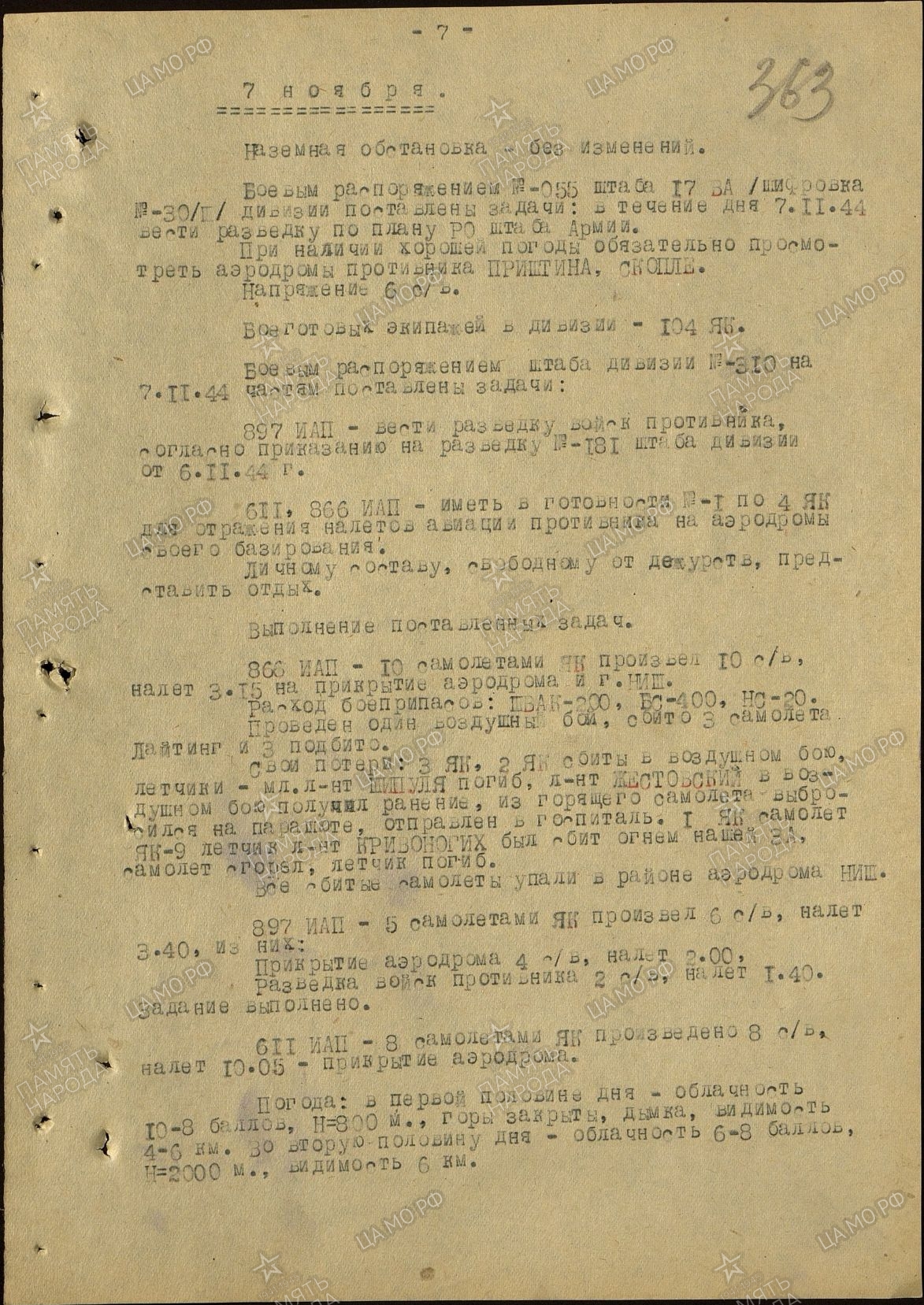 - 9 ЦАМО РФ, ф. 866 иап, оп. 223502, д. 3. Скан документа отсутствует.