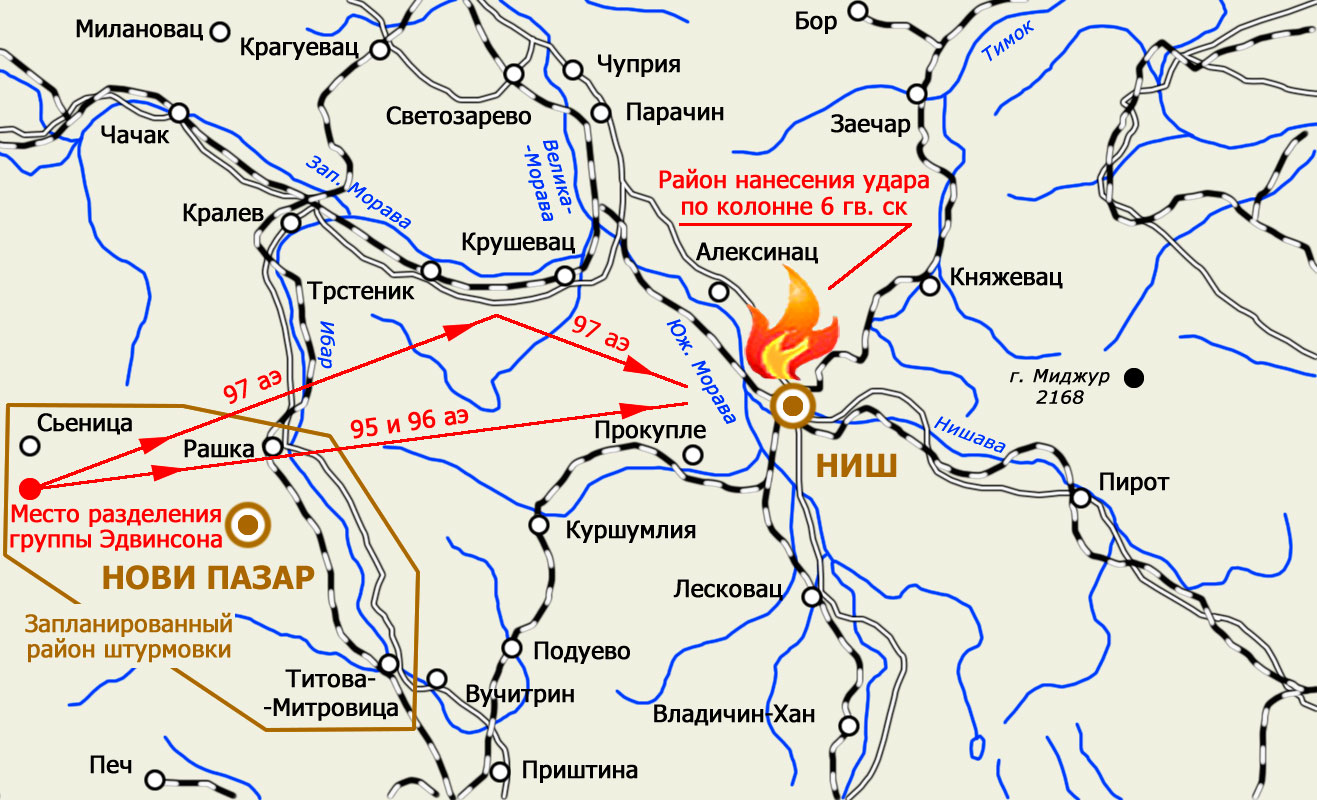 Действительно, все верно, за исключением одного: это был не «какой-то город или деревня», а Ниш — второй по величине город Сербии, и американцам было прекрасно известно, где он расположен и как выглядит с высоты. Начиная с 20 октября 1943 г. американская авиация бомбила его шестнадцать раз! 15 апреля 1944 г. во время самой сильной бомбардировки в городе погибло 700 мирных жителей. При этом американские летчики почему-то не допустили ни единой «навигационной ошибки», ни разу не спутав Ниш с Нови Пазаром.