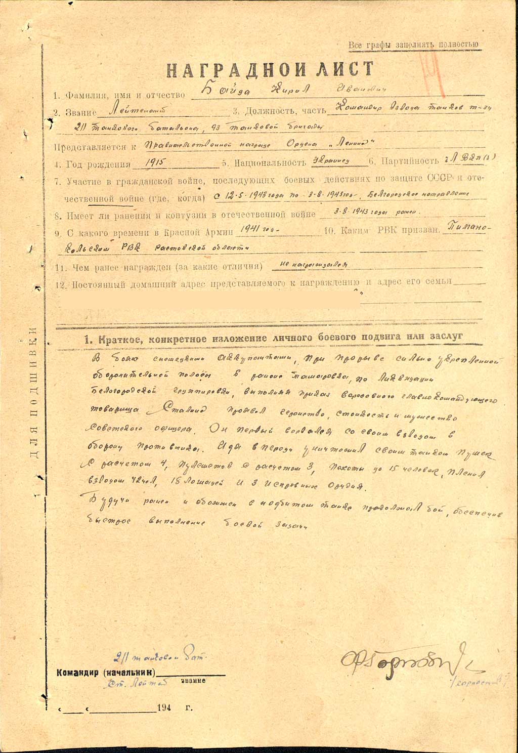 93 отбр со своей задачей справилась прекрасно. Получив приказ прорвать оборону противника вглубь на 5 км, танковые батальоны бригады перекрыли глубину прорыва почти вдвое. Особенно отличился в этом бою командир взвода К. И. Байда, который еще не раз докажет впоследствии, что он — лучший, и именная тридцатьчетверка «Боевая подруга» была вручена ему по праву. За прорыв обороны противника 3 августа К. И. Байда командованием бригады был представлен к высшей правительственной награде — ордену Ленина. Однако командующий 5 гв. А и ее Военный совет не посчитали подвиг Байды чем-то выдающимся и снизили статус награды сразу на две ступени, снизойдя до награждения отважного офицера лишь орденом Отечественной войны I степени.