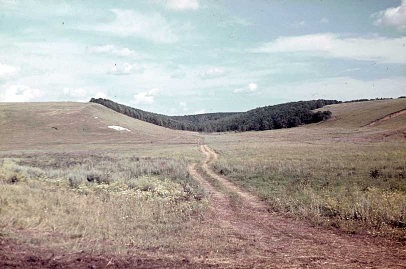 В глубине обороны противника местность открытая, с незначительным количеством оврагов и естественных масок. Высота 227,58 являлась господствующей в районе третьей позиции обороны противника и обеспечивала ему наблюдение за расположением наших войск на глубину 4–6 км. Но наличие в районе расположения войск корпуса отдельных лесных массивов, оврагов и населенных пунктов позволяло скрытно разместить в них штабы, тыловые подразделения и учреждения. А высота 238,4, захваченная нашими войсками накануне наступления, давала возможность просматривать оборону противника на глубину 6–7 км.