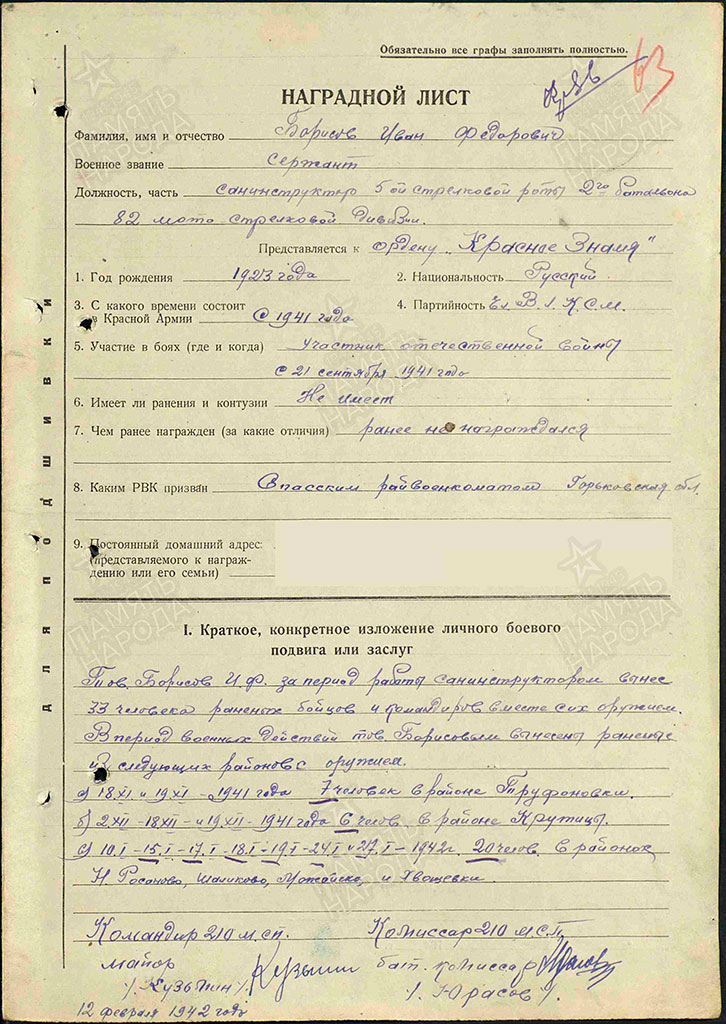 15. кр-ц, стрелок Борисов Иван Федорович 1923 — Горьковская обл. [7]