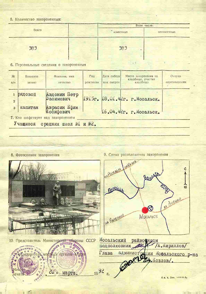 30 марта полковника Н. Н. Соловьева похоронили с воинскими почестями на городском кладбище г. Мосальска.