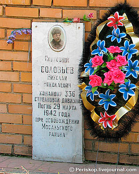 В борьбе с немецкими оккупантами за свободу, честь и независимость социалистической Родины пал смертью храбрых командир 336-й сд полковник, орденоносец Николай Николаевич Соловьев.