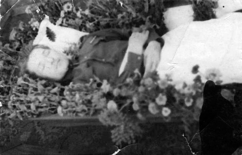Наверное будет уместным показать еще один фотоснимок военной поры, сохранившийся в семейном архиве. На нем запечатлены похороны неизвестного офицера, личность которого установить пока не удалось. По всей вероятности это кто-то из комсостава 126 танкового полка, в котором воевал И. Г. Денисенков — за последние полтора года войны погибли многие, в том числе два командира полка. Возможно, кто-то все же сумеет опознать погибшего офицера, изображенного на фотографии, и он не останется безымянным?