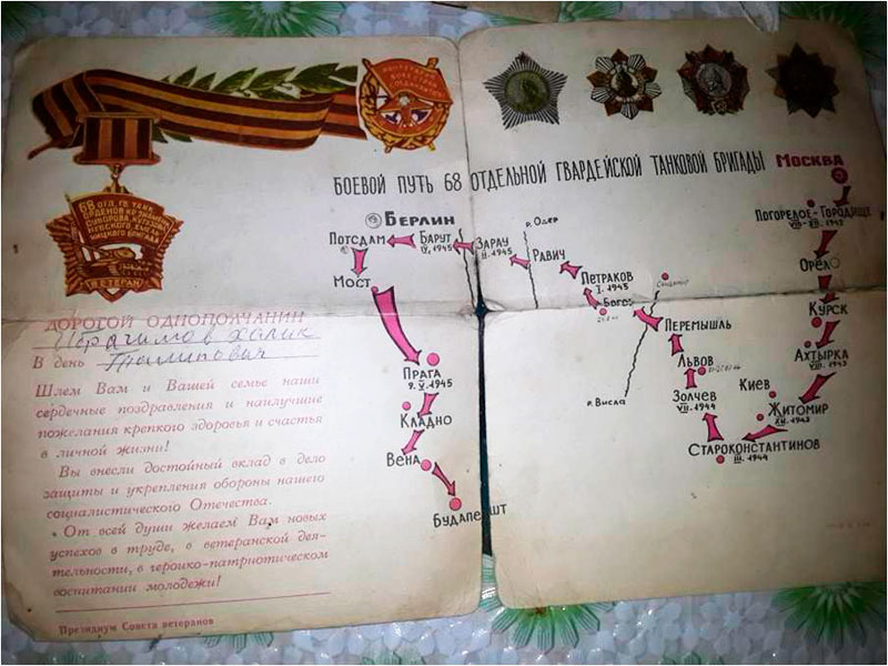 Летом 1945 г. 68 отдельная танковая бригада была свернута в танковый полк, в котором Х. Т. Ибрагимов служил еще некоторое время в должности пулеметчика бронетранспортера.