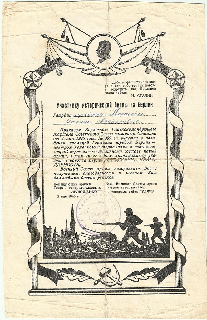 и благодарность от Военного совета 4 гв. танковой армии. Для просмотра щелкнуть по картинке.
